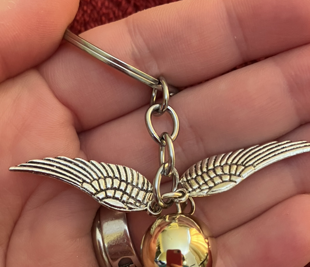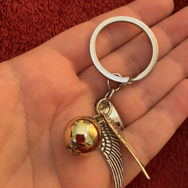 This is a 3D Keyring golf in colour. It is a 3D ball with two wings attached by loop’s above.