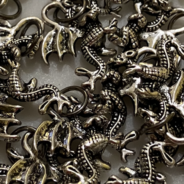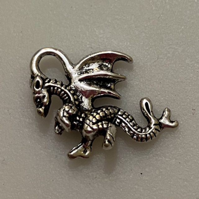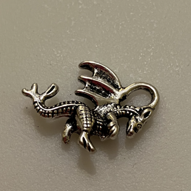 This is a Small Dragon Charm. The Dtagonhas one wing and has a 3D body with 4 legs and a tail.